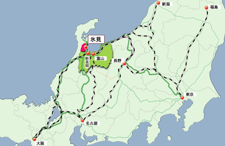 氷見市へのアクセス方法を三大都市圏別にご紹介します。