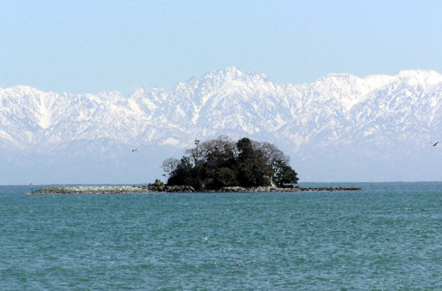 10時00分海沿いを走れば、富山湾上に浮かぶようにそびえる立山連峰が望めます。